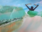 Around the World + De landing met aanstormende golven samengevoegd / 2 schilderijen in één koop.